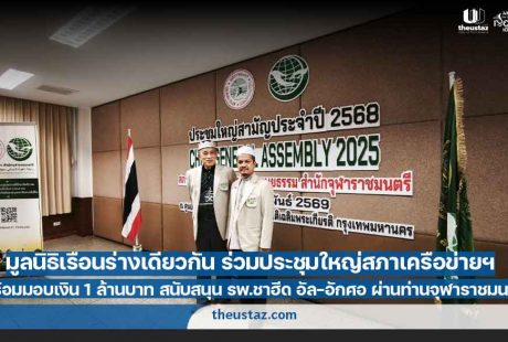 มูลนิธิเรือนร่างเดียวกัน ร่วมประชุมใหญ่สภาเครือข่ายฯพร้อมมอบเงิน 1 ล้านบาท สนับสนุน รพ.ชาฮีด อัล-อักศอ ผ่านท่านจุฬาราชมนตรี
