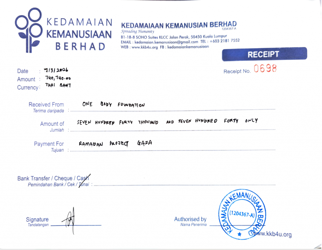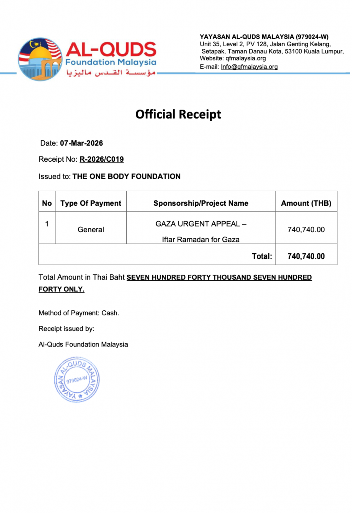 ผศ. มัสลัน มาหะมะ ประธานมูลนิธิเรือนร่างเดียวกันแจ้งว่า หลังจากมูลนิธิ ฯ ได้ดำเนินโครงการมอบอาหารละศีลอดแก่ชาวกาซ่าในเดือนรอมฎอน 1447 จำนวน 2,222,222 บาท เมื่อวันที่ 8 มีนาคม 2569 ปรากฏว่า มีพี่น้องให้ความสนใจบริจาคอย่างต่อเนื่อง ทางมูลนิธิฯ จึงได้มีมติส่งมอบความช่วยเหลือรอบสองในเดือนรอมฎอนนี้เป็นเงินจำนวน 320,000 บาท ( ประมาณ 10,000 ดอลล่าร์) เพื่อจัดซื้อเสื้อผ้าและมอบของขวัญให้กับหนูน้อยขาวกาซ่าจำนวน 500 คน ในจำนวนนี้มีเด็กกำพร้า 300 คน โดยมีมูลนิธิ AL-Quds Foundation เป็นฝ่ายรับผิดชอบดำเนินโครงการและประสานงานในพื้นที่