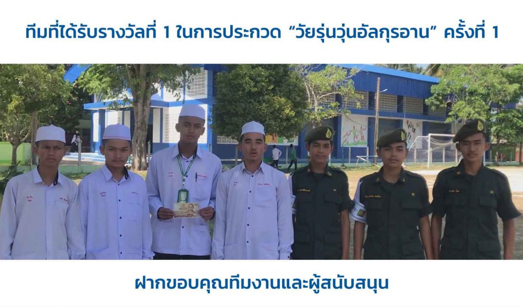 โดยได้รับรางวัลเงินสดจำนวน 2,000 บาท เอื้อเฟื้อโดยมัสยิดอัตตะอาวุน บางปู ปัตตานี น้องๆทั้ง 7 คนได้ฝากขอบคุณทีมงานและมัสยิดอัตตะอาวุน มา ณ โอกาสนี้