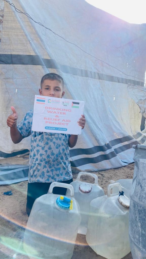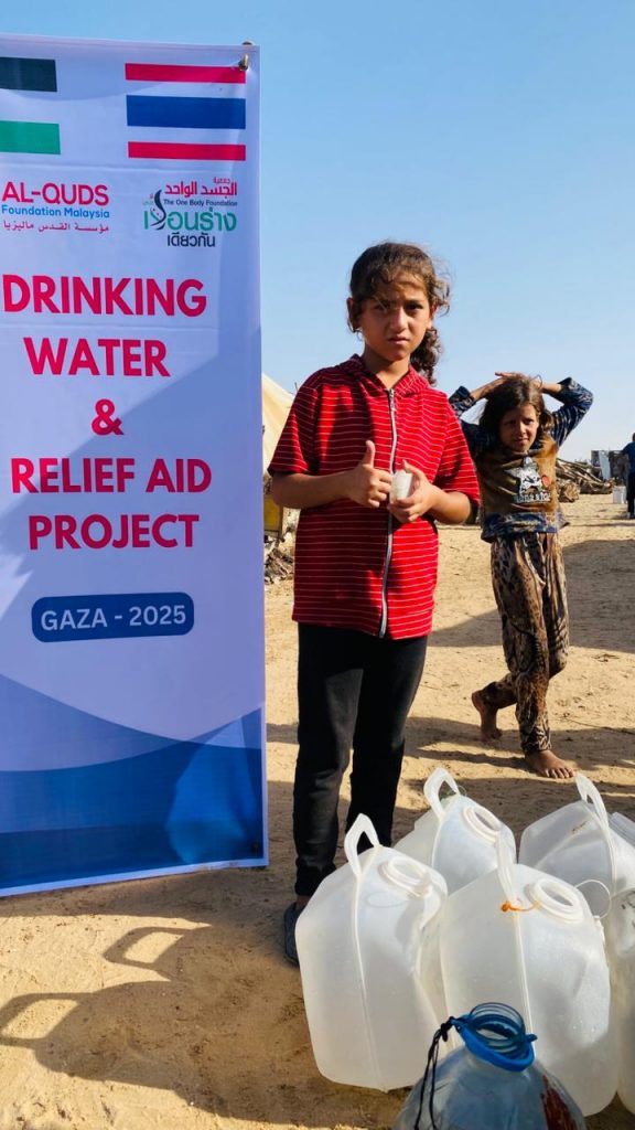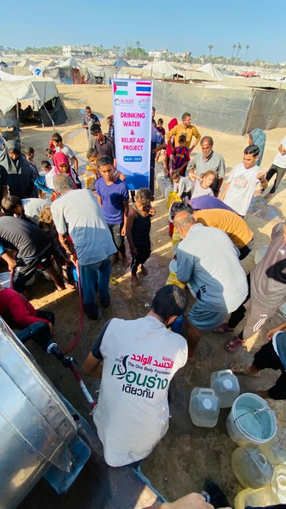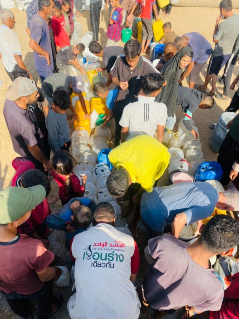 ส่วนโครงการที่ 2 โครงการซื้อน้ำดื่ม ทั้งนี้เนื่องจากปัจจุบันชาวกาซ่ากำลังประสบภาวะขาดแคลนน้ำดื่มขั้นวิกฤต ในขณะที่อิสลามสอนว่า การบริจาคทานที่ประเสริฐที่สุดคือการบริจาคน้ำดื่ม (นัยหะดีษรายงานโดยนะซาอีย์/3664,อะบูดาวูด/1681) เราจึงมุ่งมั่นจัดโครงการนี้ ซึ่งในวันศุกร์ ที่ 31 ตุลาคมที่ผ่านมา เราสามารถซื้อน้ำบริสุทธิ์จำนวน 150,000 ลิตร และแจกจ่ายให้ชาวกาซ่าจำนวน 250,000 คน โดยแต่ละคนสามารถรับน้ำดื่มได้เฉลี่ยคนละ 6 ลิตรเพื่อบริโภคในระยะเวลา 2-3 วัน
