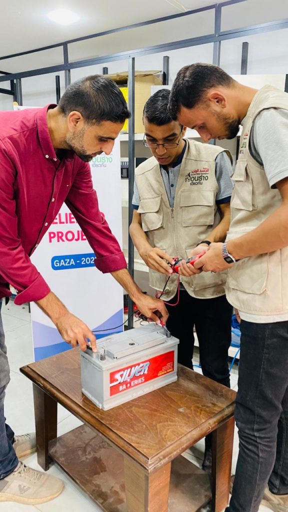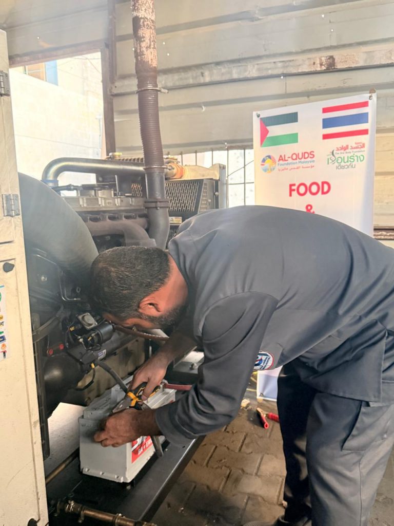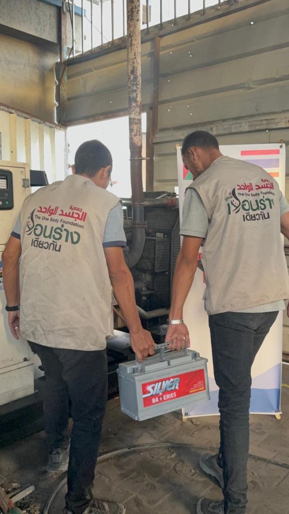 ในเบื้องต้นมูลนิธิฯ ได้ซื้อเครื่องผลิตกระแสไฟฟ้าให้แก่โรงพยาบาลอัลวาฟา เพื่อผลิตกระแสไฟฟ้าที่ห้องผู้ป่วยฉุกเฉินซึ่งมีผู้ป่วยและผู้รับบาดเจ็บหลายร้อยคนกำลังรอคอยความช่วยเหลืออยู่ โดยเครื่องผลิตออกซิเจนและอุปกรณ์การแพทย์อื่น ๆ ต้องการกระแสไฟฟ้าเป็นจำนวนมาก แต่โรงพยาบาลยังขาดแคลนอุปกรณ์เหล่านี้และที่มีอยู่ก็ใช้งานไม่ได้